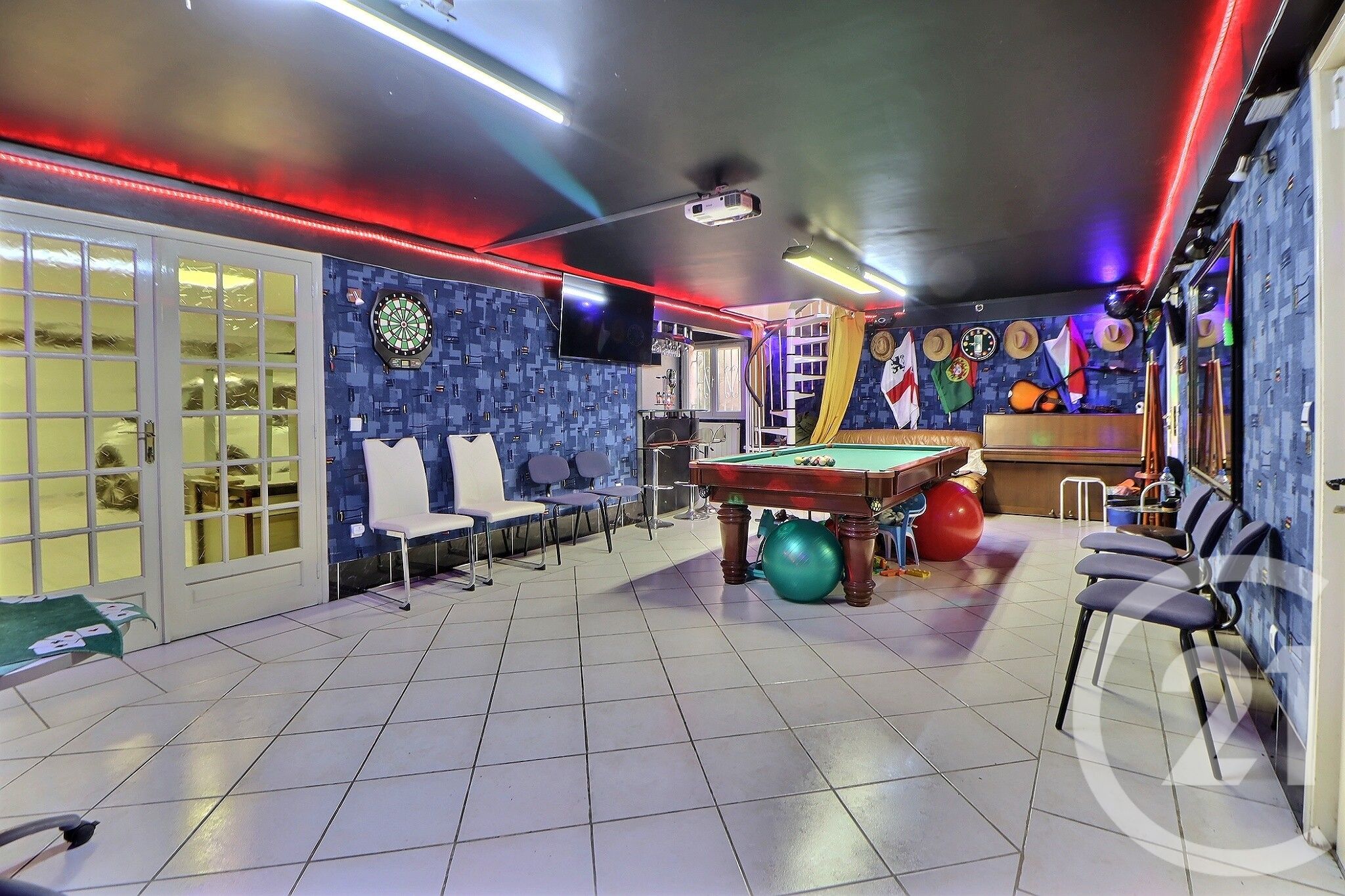 Côté pratique, la maison dispose également d'un local technique de 33 m², d'un grand garage de 46 m² et d'un espace de stationnement pouvant accueillir jusqu'à cinq véhicules. À l'extérieur, vous profiterez d'un jardin privatif sans vis-à-vis, idéal pour des moments de détente en toute tranquillité. Un sauna extérieur vient compléter cet espace bien-être. Le sous-sol aménagé propose un véritable espace loisirs avec salle de jeux, bar et vidéoprojecteur, parfait pour partager de beaux moments en famille ou entre amis.